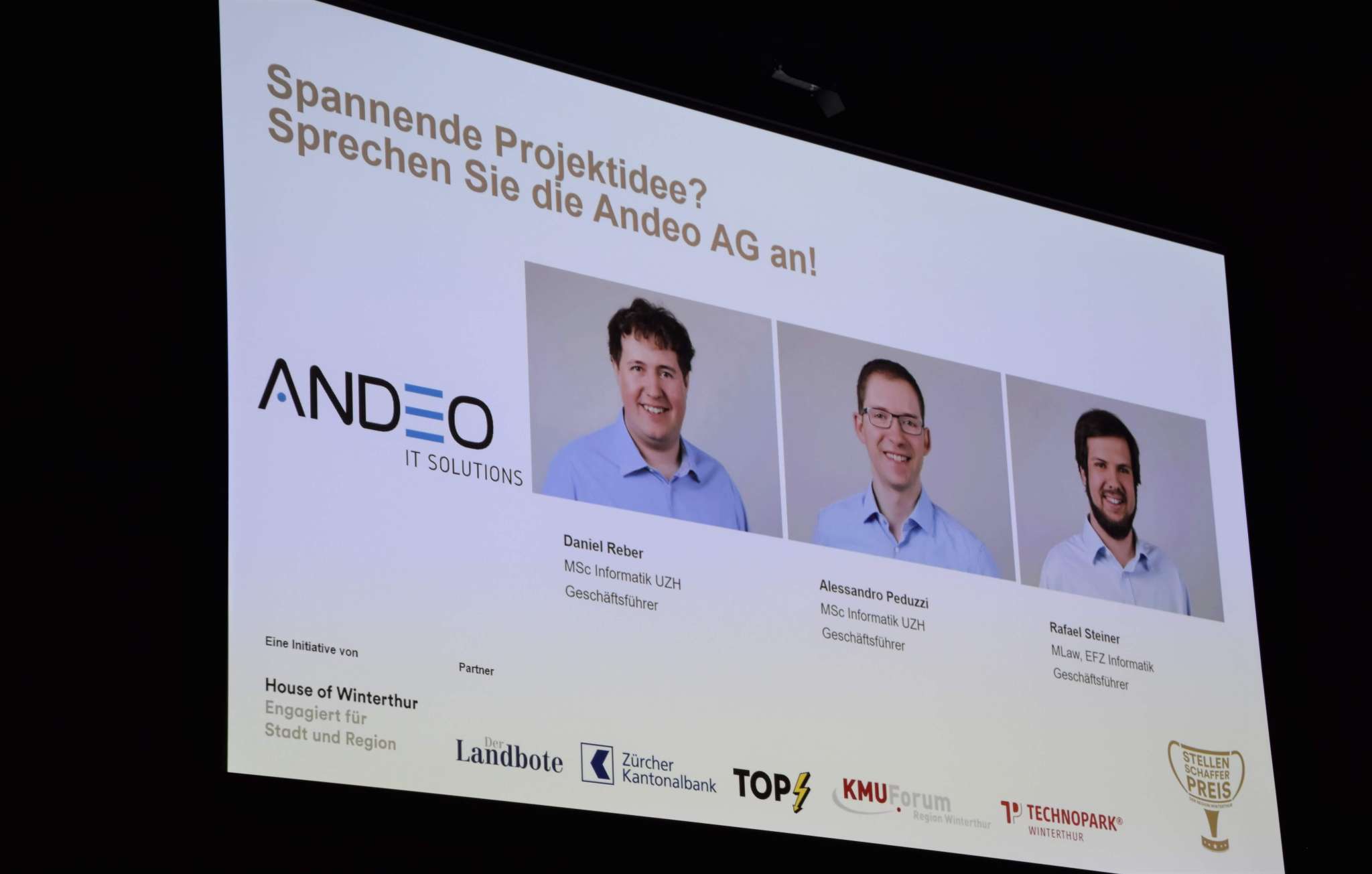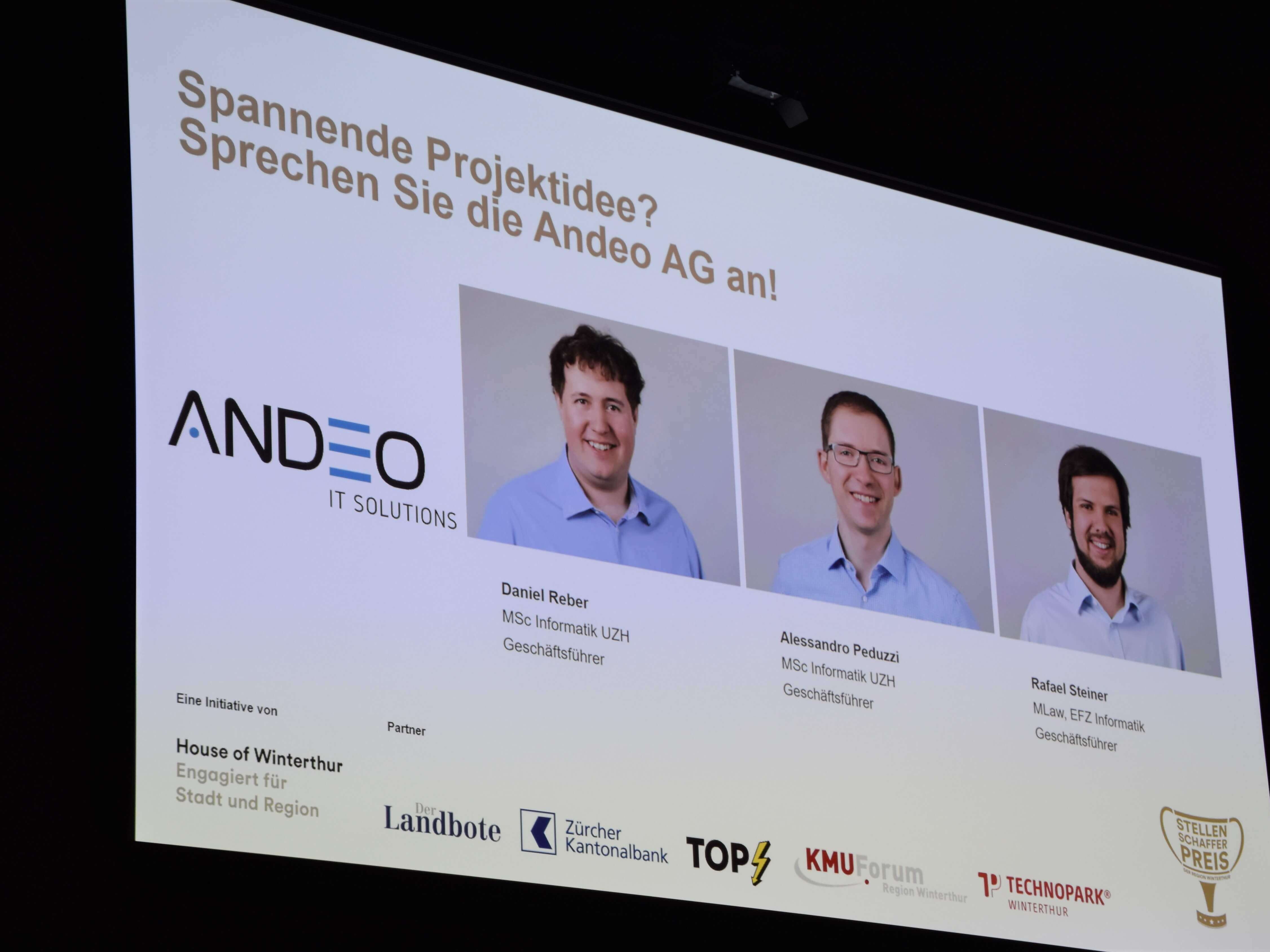 The Job Creator Award 2021 was successfully presented on Thursday afternoon, October 7, 2021 as part of the KMU Forum Region Winterthur. Andeo AG was honored in the "Job Creator" category. The prize in the "Apprenticeship Creator" category went to Zimmer Switzerland Manufacturing GmbH. This year's special prize for special achievements in the city and region of Winterthur was awarded to the staff in the intensive care unit, the COVID ward and the emergency department at Winterthur Cantonal Hospital (KSW).