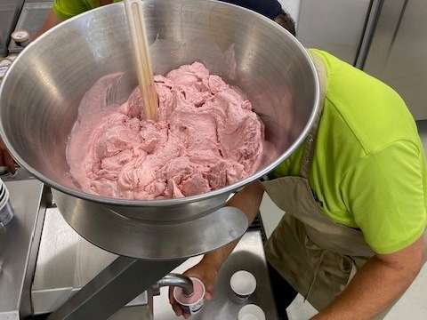 Raspberry ice cream made from regional ingredients