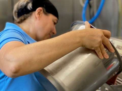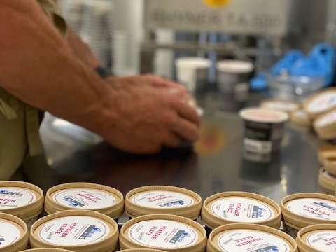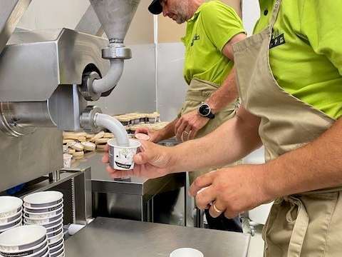 We are warmly welcomed by the team as soon as we arrive. The raspberry ice cream is just being produced. "Our raspberry ice cream is something special for me", says Brigitte Grab and adds: "Raspberry was one of our first varieties and most of the berries come from our own cultivation". But the Grab team also uses regional ingredients and no artificial flavorings in their ice cream.